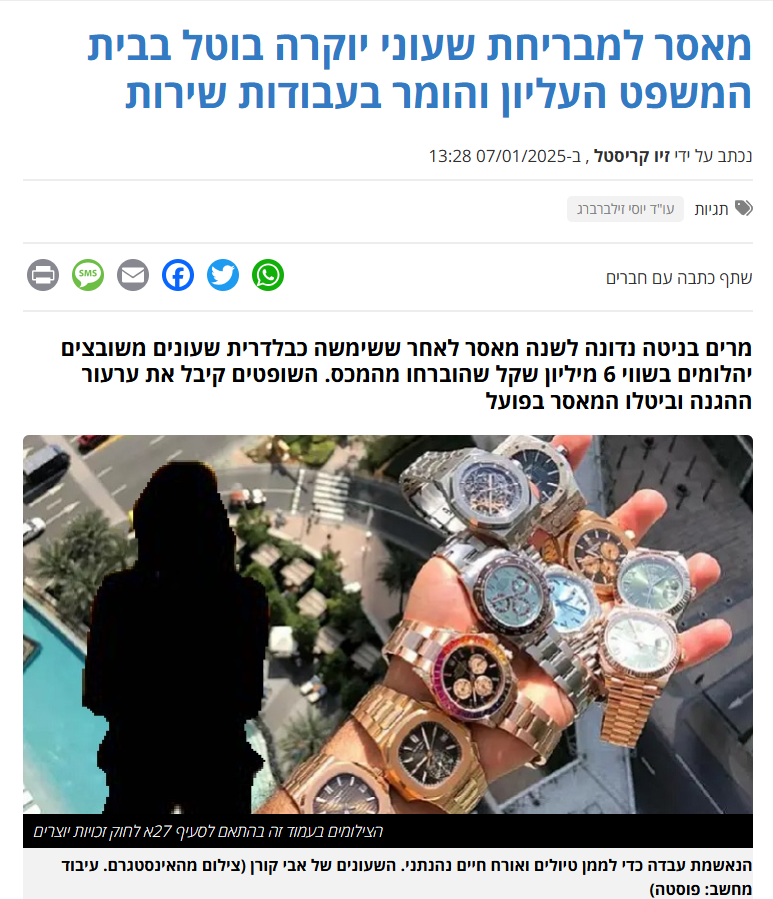 דף הבית » מן העתונות » פוסטה: מאסר למבריחת שעוני יוקרה בוטל בבית המשפט העליון והומר בעבודות שירות
